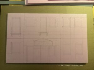 Architektur: Fenster, Läden, Türen und die Markise fertige ich aus Karton in verschiedenen Stärken; die Vorhänge bestehen aus fein gefaltetem Seidenpapier.