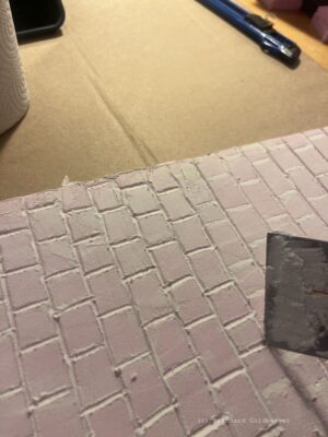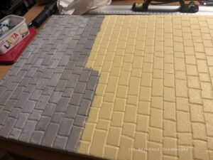 Untergrund: Die Pflastersteine werden individuell in Hartschaum geritzt, leicht verputzt und farblich abgestimmt.
