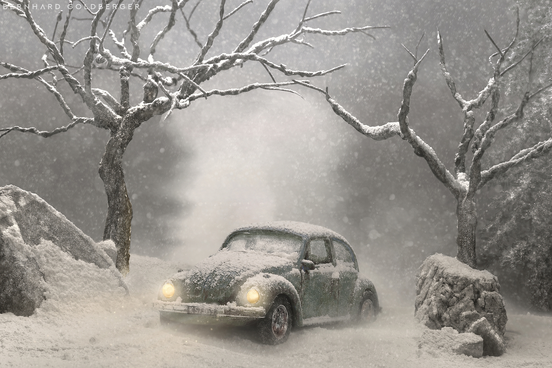 Das Finale: Der fallende Schnee wurde als letzter Schritt in der digitalen Nachbearbeitung hinzugefügt, um die Dynamik des Schneesturms perfekt einzufangen.