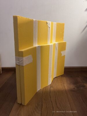 Verarbeitung: Die ausgedruckten Bögen werden ordentlich zerknittert, bis sie die raue Haptik von echtem Stein imitieren.